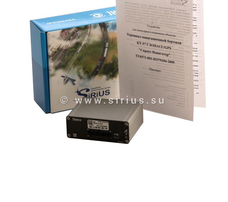 ГЛОНАСС/GPS терминал КТ-57 производства компании «Сириус Навигатор» сделан на основе терминала КТ-56XXL. Обладает WIFI-модулем.