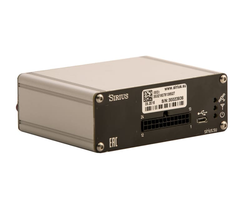Простое устройство с встроенными чувствительными антеннами ГЛОНАСС/GPS и GSM. Оснащен встроенной батареей и цифровым интерфейсом RS-485, интерфейсом 1-Wire.